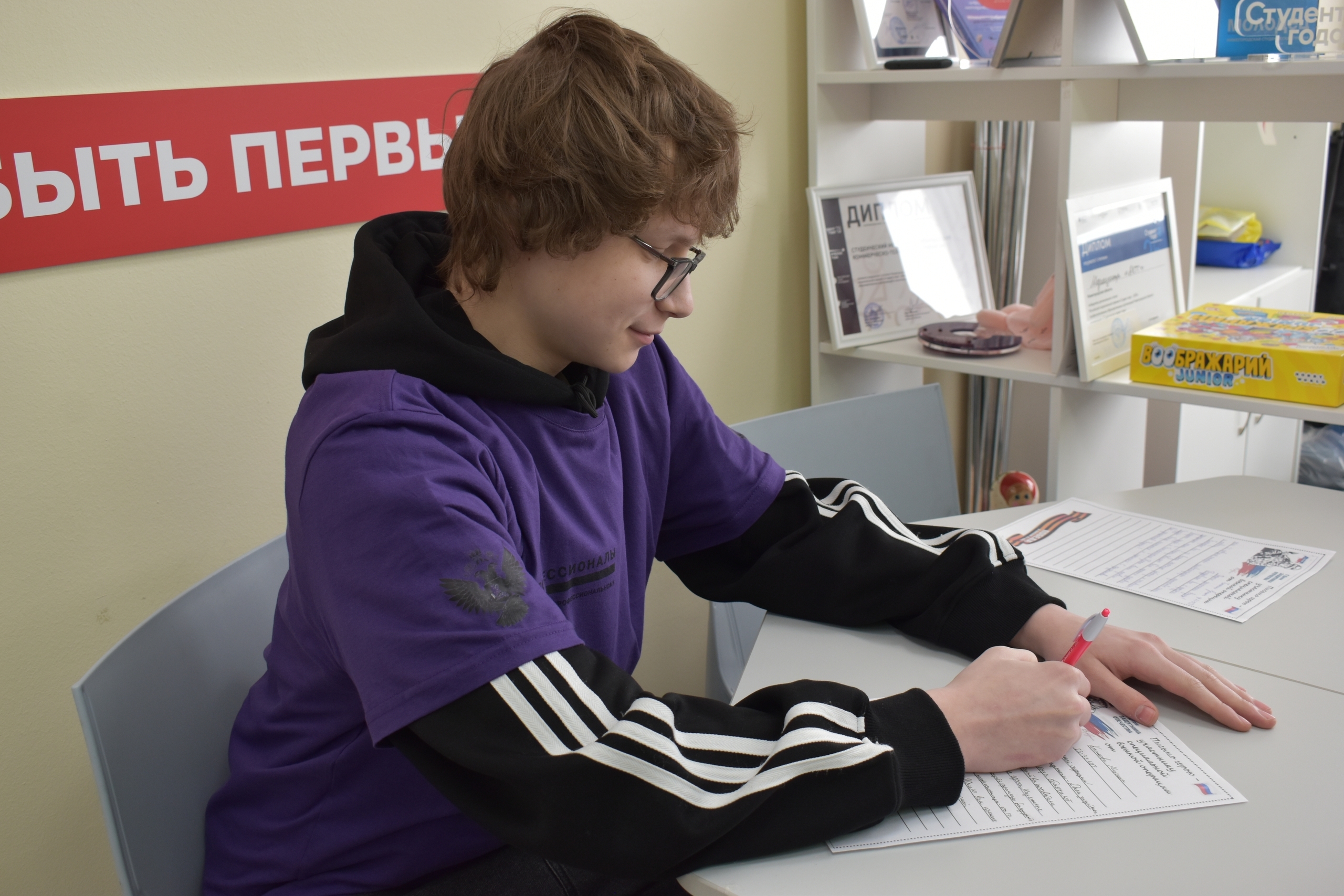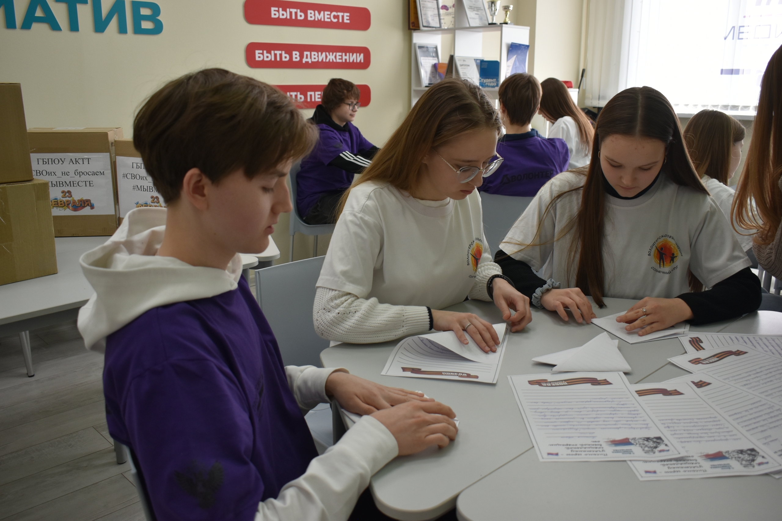 Студенты 1 курса в рамках Всероссийской акции «Письмо солдату», написали письма нашим воинам, в которых поздравили их с праздником 23 февраля. Письма ребят были наполнены тёплыми словами признательности и глубокой благодарности за мужество и героизм, с пожеланием вернуться к своим семьям живыми, здоровыми и обязательно с победой! Все письма также будут переданы бойцам «за ленточку».