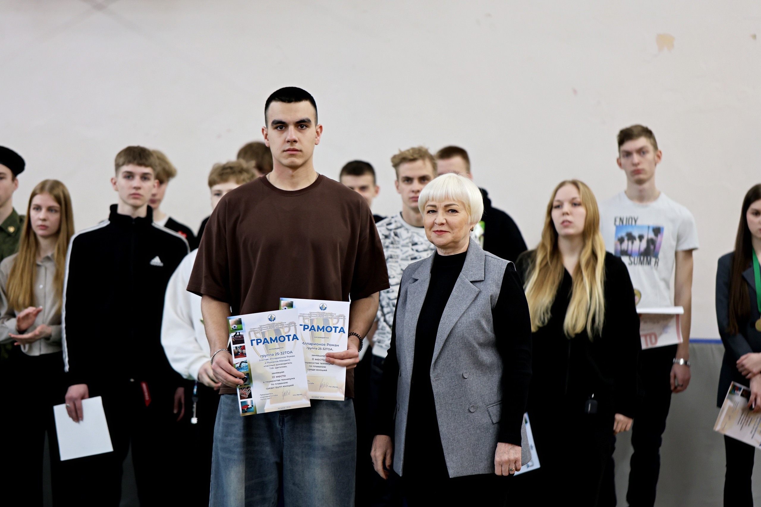 Завершением мероприятия стало награждение лучших студентов, проявивших себя в учебе, спорте и творчестве за прошедший месяц. Руководитель физического воспитания, амбассадор Всероссийского физкультурно-спортивного комплекса «Готов к труду и обороне» Роман Владимирович Ивлев вручил студентам, успешно сдавшим нормативы, знаки отличия ГТО.