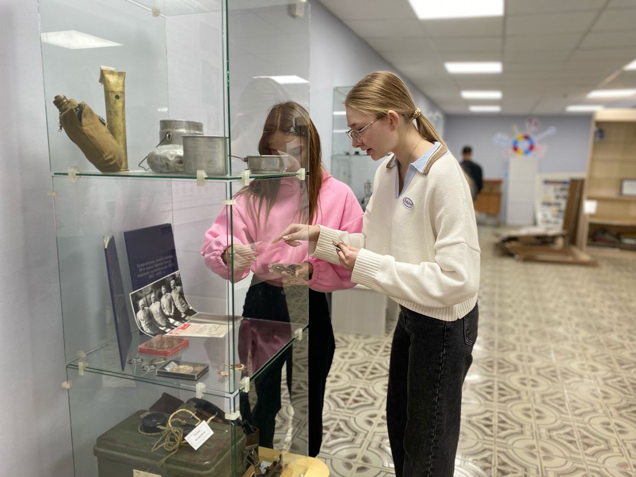 С помощью участников кружка «Экскурсовод» были установлены 4 современные витрины с выдвижным механизмом. С большим интересом студенты восстанавливали и обновляли экспозиции, посвященные боевому пути 29-го отдельного батальона воздушного наблюдения, оповещения и связи и выпускникам техникума, погибшим в локальных конфликтах.
